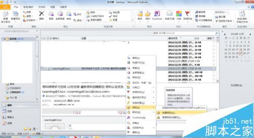 1、打开outlook应用,右键选中今后要筛选友人发的的邮件,在弹出菜单中选中创建规则。