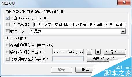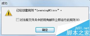 5、后一步规则就创建了,系统提示是不是马上运行规则,勾选是后确定,系统会自动在以前邮件中筛选出这个发件人的邮件,移至test目录