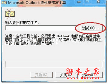 4、回到scanpst修复软件浏览刚刚所找到的PST文件,点击开始进行扫描。