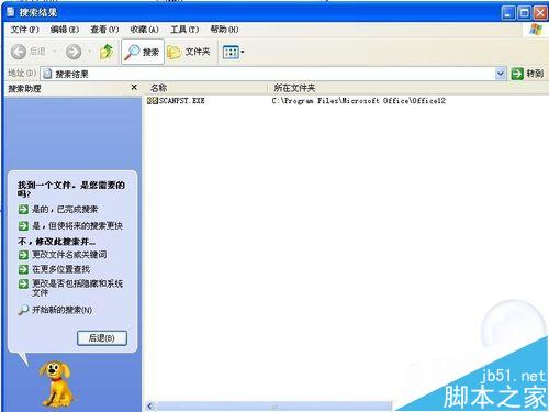 1、点击电脑开始按钮---找到文件搜索----在搜索中输入此次需要使用到的修复软件Scanpst.exe.如下图: