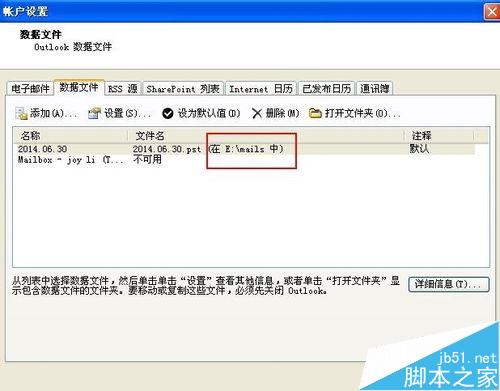 3、确定此次需修复的邮件文件路径。点击开始----设置----控制面板----找到邮件---双击打开---选中数据文件打开---可以看到邮件保存路径。如下图: