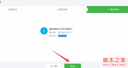 提示确定要修改公众号名称吗?点击确定,即完成修改,新名词通过审核后,在帐号详情(名称)一栏,将不会再显示修改入口。