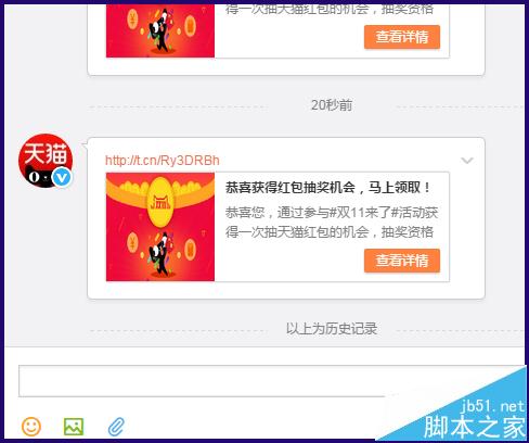 3、转发5次后,在私信会收到天猫的抽奖地址
