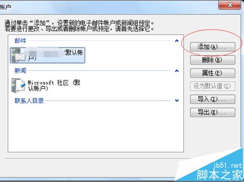 2、点击“账户”后弹出新的对话窗口,点击“添加”按钮,如下图1中标红的位置。点击后弹出新的“添加账户”的对话框,如下图2 ,选中“电子邮件账户”,并且点击“下一步”,按照图2 中标红的位置配置。