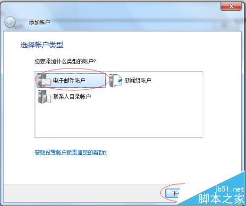 3、点击完“下一步”就会出现“添加电子邮件账户”的窗口。如下图1。