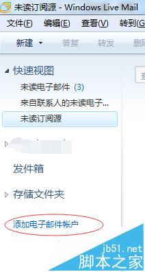 4、这里介绍第二种快速跳到“添加电子邮件账户”的窗口的方法,就是打开Windows Live Mail 后,直接点击“添加电子邮件账户”,如下图1中标红的位置。这时候就会弹出第三步的对话框了。