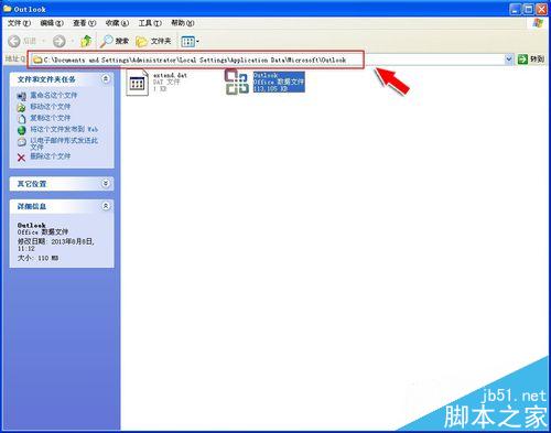 4、这样就找到了我们Outlook的数据文件,请大家务必记住该文件的存放位置。
