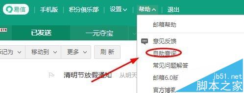 1、如果我们想查看更确切的投递状态,那么在邮箱首页的帮助下点击右侧的三角形下拉按钮
