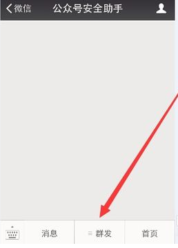 4、用户按照步骤操作以后,进入到【公众号安全助手】的操作界面,点击这个界面下方的【群发】选项。