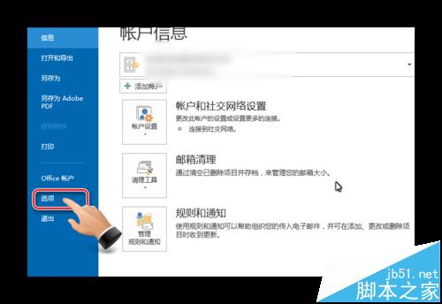 1、打开Outlook 2013客户端,点击文件选项卡,选择“选项”按钮。
