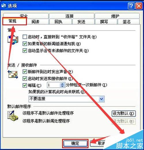 2、在跳出的选项窗口中,点击【常规】,在发送/接收邮件下设置一下,设置好后点击【应用】---【确定】,如下图所示: