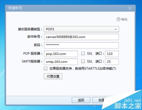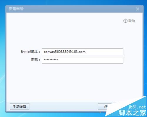 3、在对话框的提示框里输入要设置的邮箱的地址和密码,点击下方的创建。