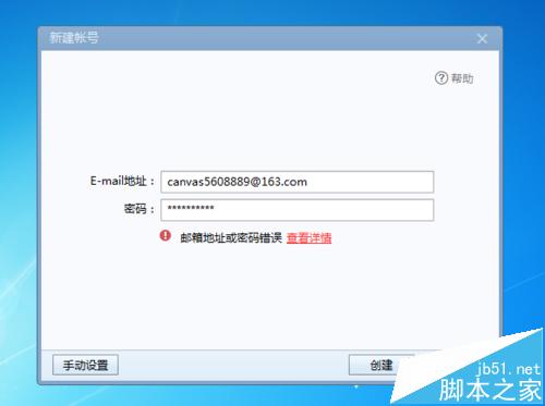 4、点击创建后,现在出现了如下画面,提示邮箱地址或密码错误。实际上,你检查多遍发现没有输错,那就是软件本身的问题。