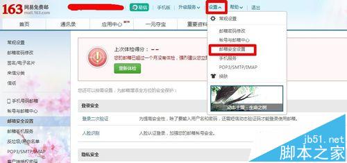 1、点击中上,“设置”中的“邮箱安全设置”,如图