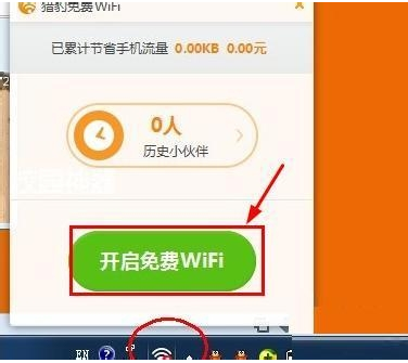 3、安装成功后,在电脑右下角有个wifi标志,点击--然后点击开启免费wifi的按钮