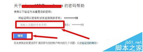 5、这里可以选择手机验证码的获取方式来取回,填写一下手机的完整号码,然后点击继续获取验证码来验证即可。