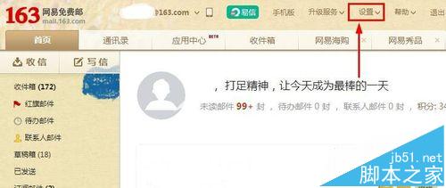 4、那么为了安全怎么给邮箱网盘添加安全密码呢?可以点击主页上方设置按钮。