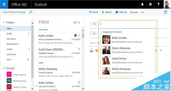 微软一直定期更新其电子邮件服务,现在该公司已经为Outlook.com和Outlook On Web推出2项新功能。首先是更聪明的通讯录,用户不再需要担心打错联系人的电子邮件地址或名称,一旦用户点击“To”或“Cc”,它会显示一个用户经常接触的名称,即使是拼写完全不一样的。例如:用户经常接触的人名叫“Kathryn”,用户即便是输入“Catherine”,它也能显示Kathryn名称并调用正确的电子邮件地址。