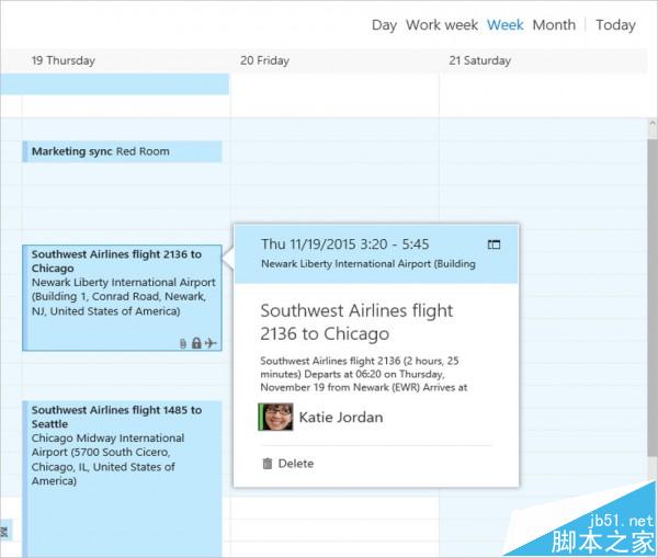 除了电子邮件联系人建议功能之外,微软也将推出特色的“电子邮件事件”功能,这将允许用户将自己的航班计划添加到日历,Outlook一旦接收到到航班确认邮件,将自动将航班信息添加到日历事件当中。