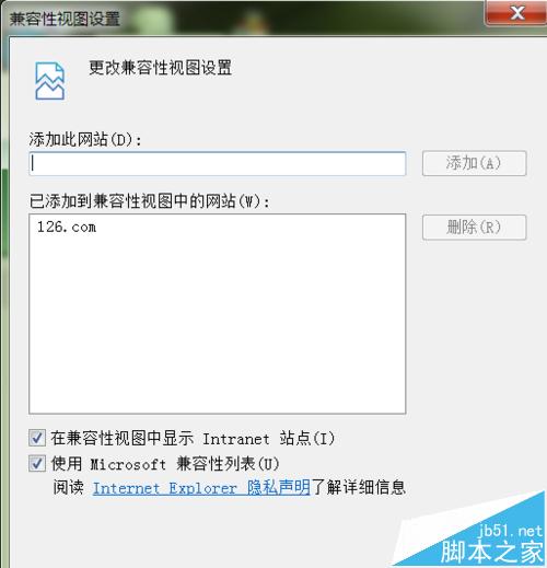 6、进入兼容性视图设置点击添加126.com