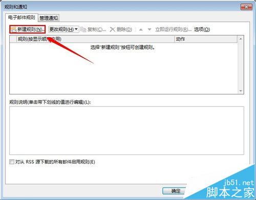 2、进入【规则和通知】的对话框后,点击【新建规则】
