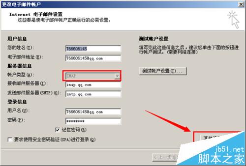 2、进入“账号设置”之后,点击需要修改的IMAP账号,“更改”按钮