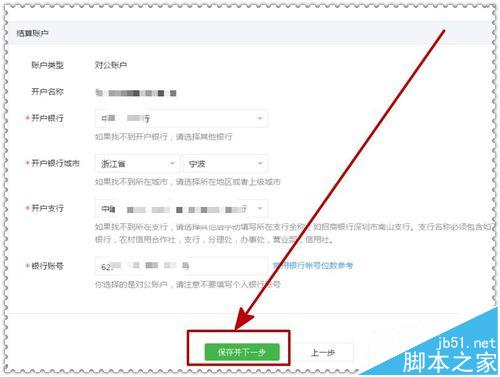 5、在如下页面中,需要填写结算帐户信息,主要有开户银行信息等,仔细核对正确无误后,进入下一步操作,如下图示。