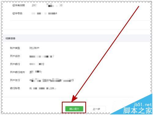 6、根据系统要求,再次核对结算帐户信息,正确后确认提交,如下图示。