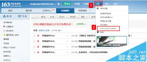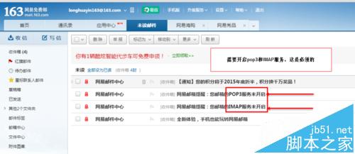 3、如果要用outlook或者foxmail接收163的邮件,需要开启pop3和IMAP服务,这是必须的