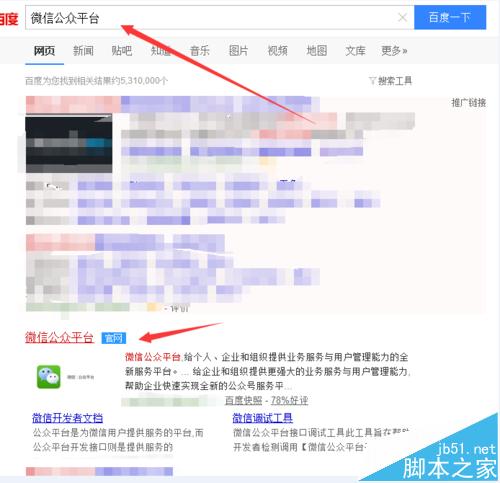 1、首先搜索微信公众平台,点击进入并登陆公众账号密码等信息;认准官网字样(如图)一个地址。