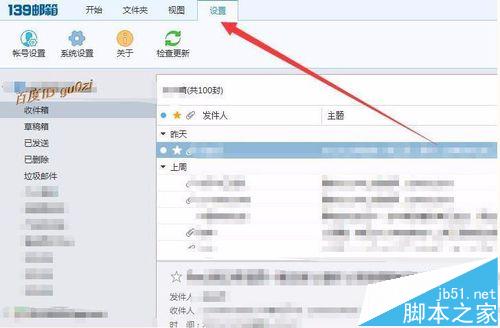 2、在-139邮箱PC客户端的主界面中,点击上方的菜单栏中的设置,进入设置页