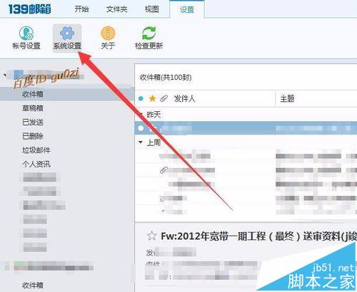 3、在-139邮箱PC客户端的设置页中,点击上方的系统设置按钮,进入系统设置页