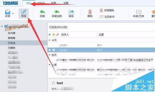 6、经上以上设置,签名已经设置好了,我们来试验一下效果,先点击 写信
