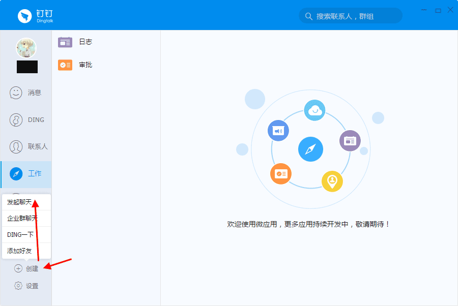 安装完毕后打开钉钉电脑版,通过你创建账号时使用的手机号登录,然后就进入了钉钉电脑版主界面。