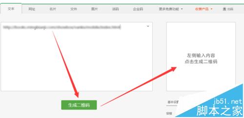 1、先将手机版链接转换成二维码,可以百度下“二维码生成器”,输入手机版链接,然后点击生成二维码: