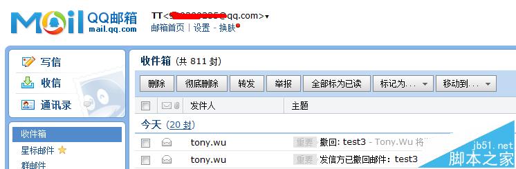 3、如果收件人用的是QQ邮箱,邮件可以撤回,撤回报告有30分钟的延迟,如收件人用的是163或者Gmail邮箱,则无法撤回。