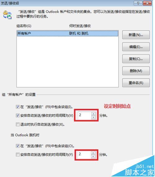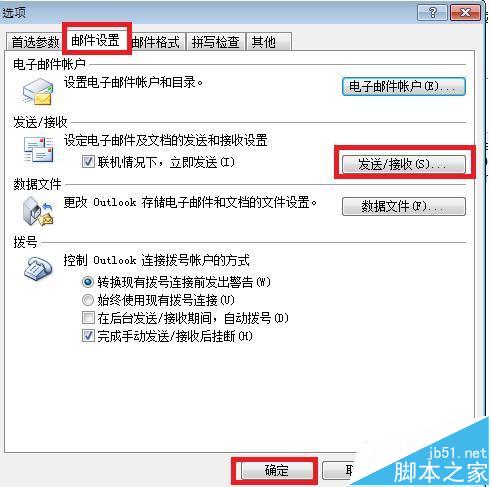 2、然后查看是否设置自动接收邮件,设置时间是不是太长。工具-》选项-》邮件设置->发送/接收,时间间隔设置短点,这样就可以尽可能快的接收邮件。
