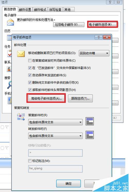 3、然后确认一下,是否开启桌面提醒功能。工具-》选项-》首选参数->电子邮件选项-》高级电子邮件选项-》新邮件到达我的邮件时,下面的几个选项都全选中,接下来还有一个桌面通知设置。