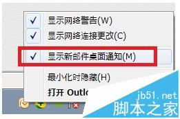 5、最后还再确认一遍,点击右下角Outlook2007,右键,显示新邮件桌面通知。(应该是勾选才会有提醒)