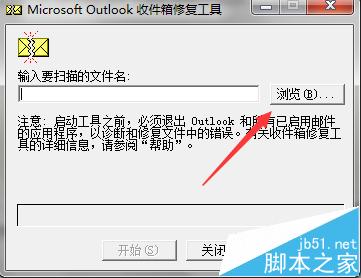 2、点击浏览,选择损坏的PST文件,然后选择“开始”扫描损坏的文件.