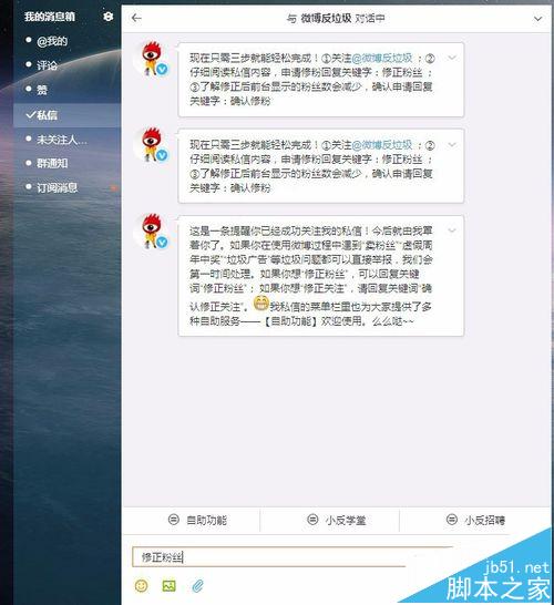 7、回复“确认修粉”,操作完成后,微博就会在1-2个工作日为你清除垃圾粉了,粉丝数量也会掉的喔~