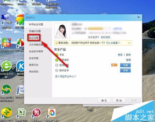 3、打开后我们看到有个页面设置,我们看到左边的第三个选项“验证设置”,选择点击打开。