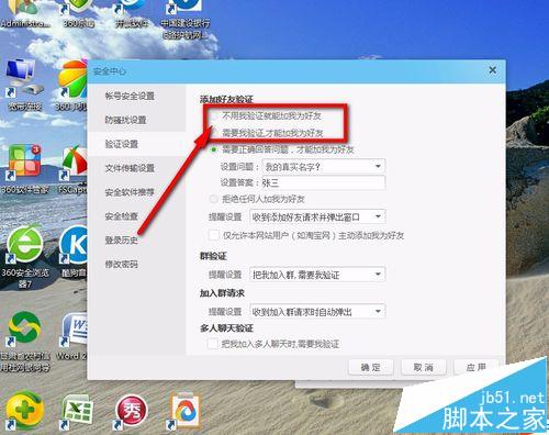4、然后我们看见第一项就是“添加好友验证”,下方有两个选项,第一二项分别是“不用我验证就能加我为好友”和“需要我验证,才能加我为好友”,如下图所示: