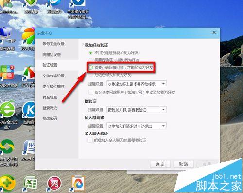 5、第三项才是“需要正确回答我问题才能加我为好友”,我们点击前面的圆圈进行选择,如下图所示: