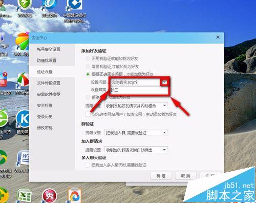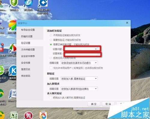 6、选择第三项以后,我们看见弹出来了两个文字框,分别是“设置问题”和“设置答案”两个选项框。我们按要求填入。