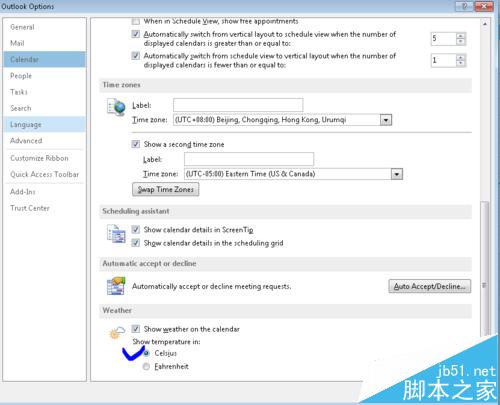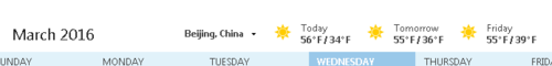 单位升级了outlook2010,变成了outlook2013的版本,然后日历里面多了个天气的显示,但是显示的是华氏摄氏度,这个不是我大China使用的标准,看的也不习惯,于是找找能不能改能China的使用习惯