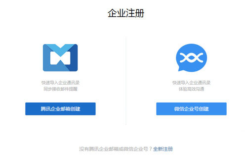 登录企业微信官网,选择“企业注册”,可通过三种方式:腾讯企业邮箱注册、微信企业号注册、全新注册。