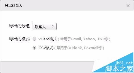4、点击工具,导出联系人,选择刚刚创建的分组,导出格式选择CSV格式,然后会将联系人下载下来