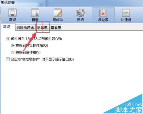 4、进入到发垃圾的选项框中之后,然后进行点击“黑名单”的选项。