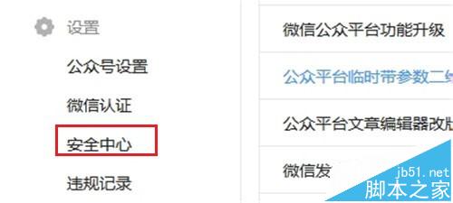 2、点击“设置”--“安全中心”